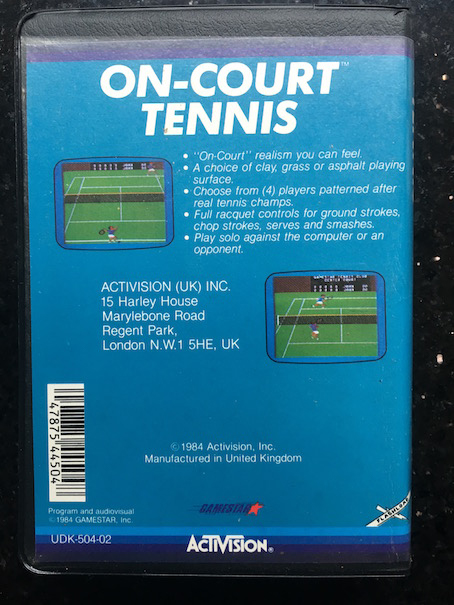 On-Court Tennis is a microcomputer-based tennis simulation that can be played against the computer or another player. The game automatically moves the avatar to the ball; the player controls the swing and timing.